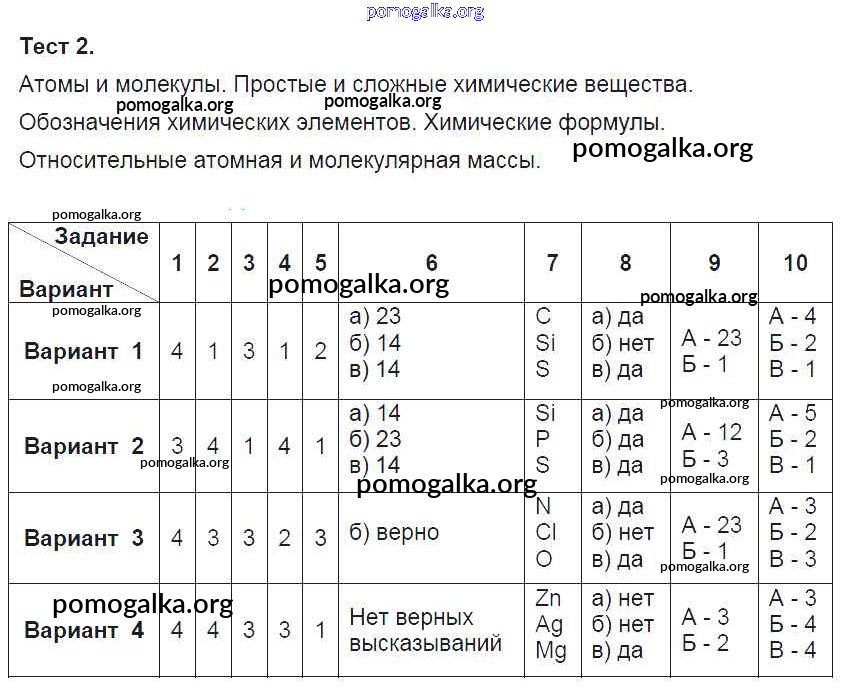 Готовые ответы - Химия 8 класс тесты Боровских Т.А. (к уч. Рудзитиса Г.Е.) - тест первоначальное химическое понятие 2