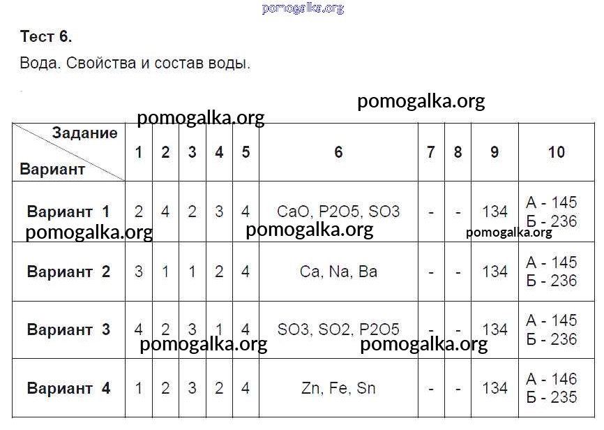 Готовые ответы - Химия 8 класс тесты Боровских Т.А. (к уч. Рудзитиса Г.Е.) - тест первоначальное химическое понятие 6