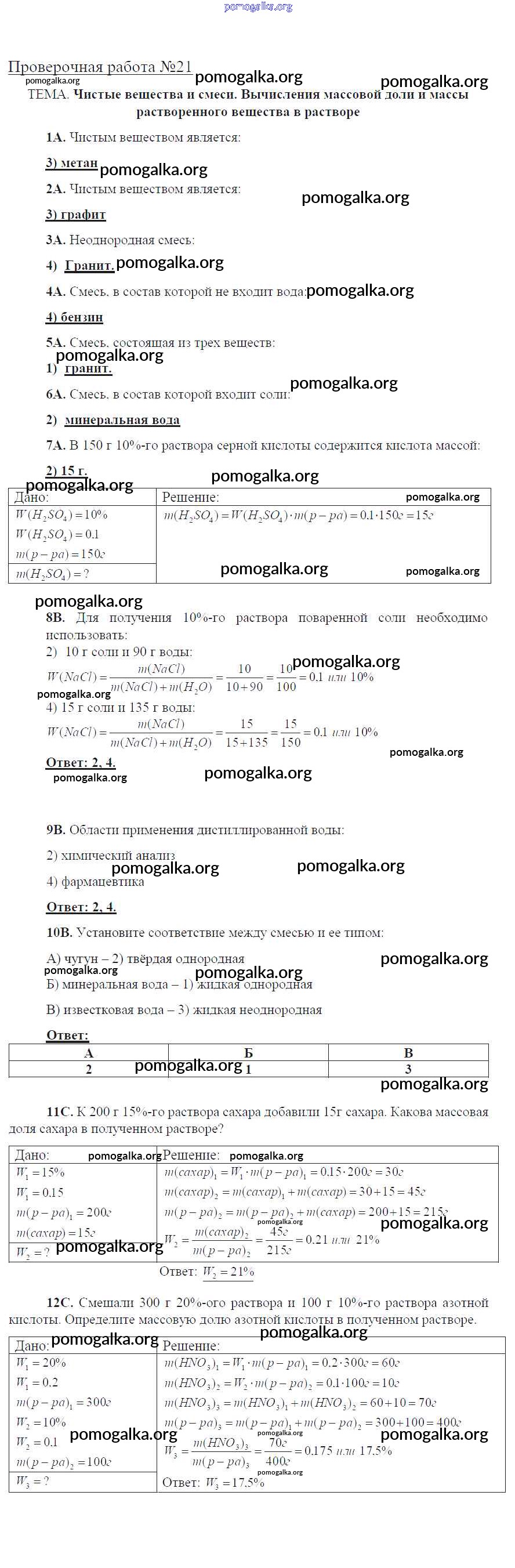 Готовые ответы - Химия 8 класс тетрадь для оценки качества знаний Габриелян О.С. - проверочная работа 21