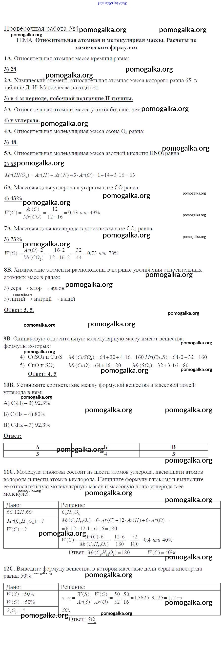 Готовые ответы - Химия 8 класс тетрадь для оценки качества знаний Габриелян О.С. - проверочная работа 4