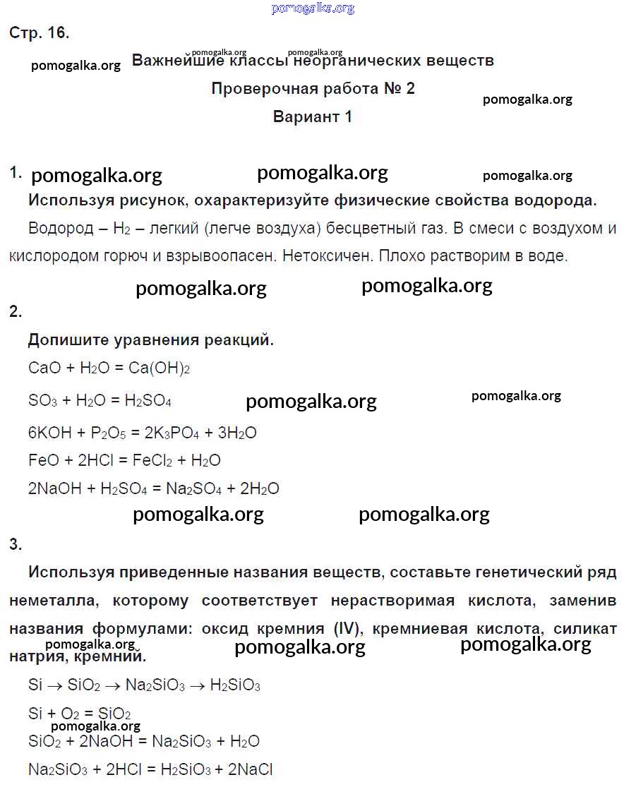 Готовые ответы - Химия 8 класс тетрадь-экзаменатор Бобылёва О.Л. - страница 16