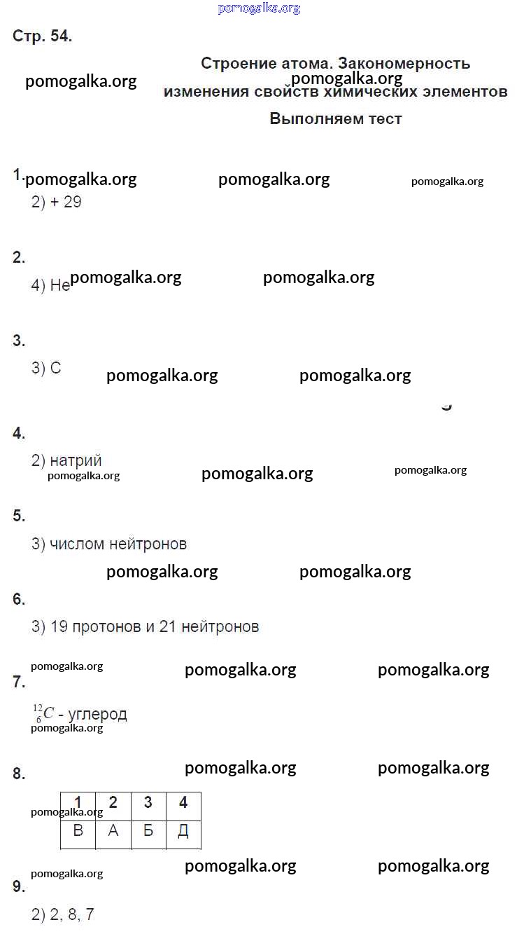 Готовые ответы - Химия 8 класс тетрадь-тренажёр Гара Н.Н. - страница 54