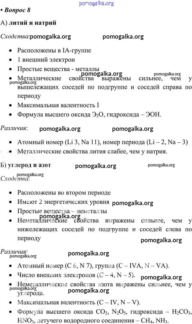 §33. Характеристика элемента по его положению в периодической системе. №1-12
