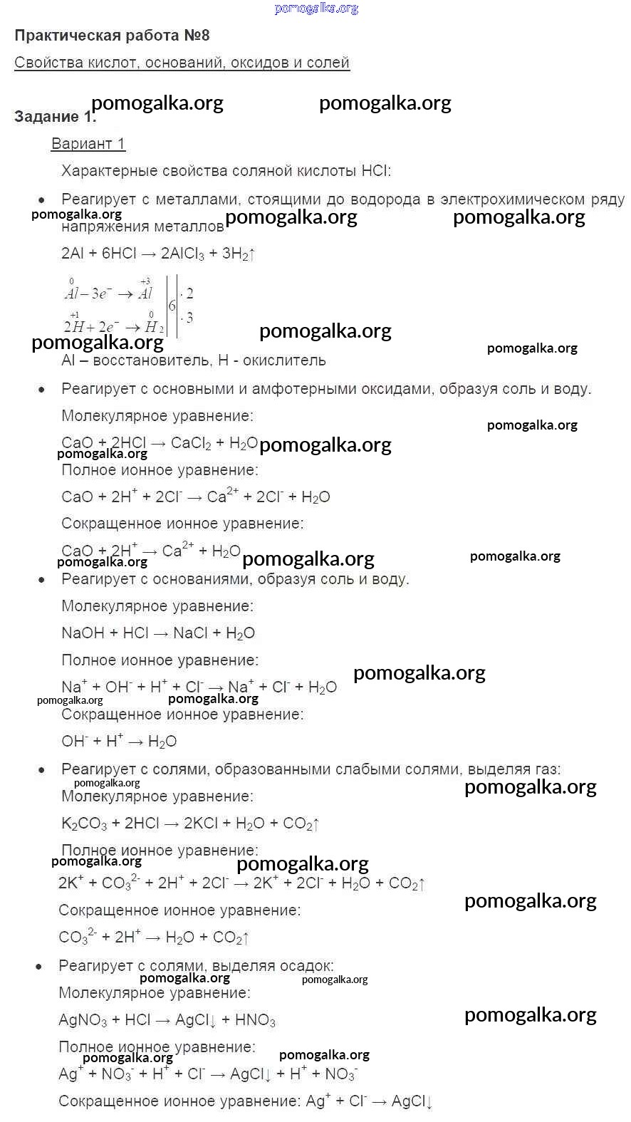 Готовые ответы - Химия 8 класс Габриелян О.С. - вариант 1 пр-8 1
