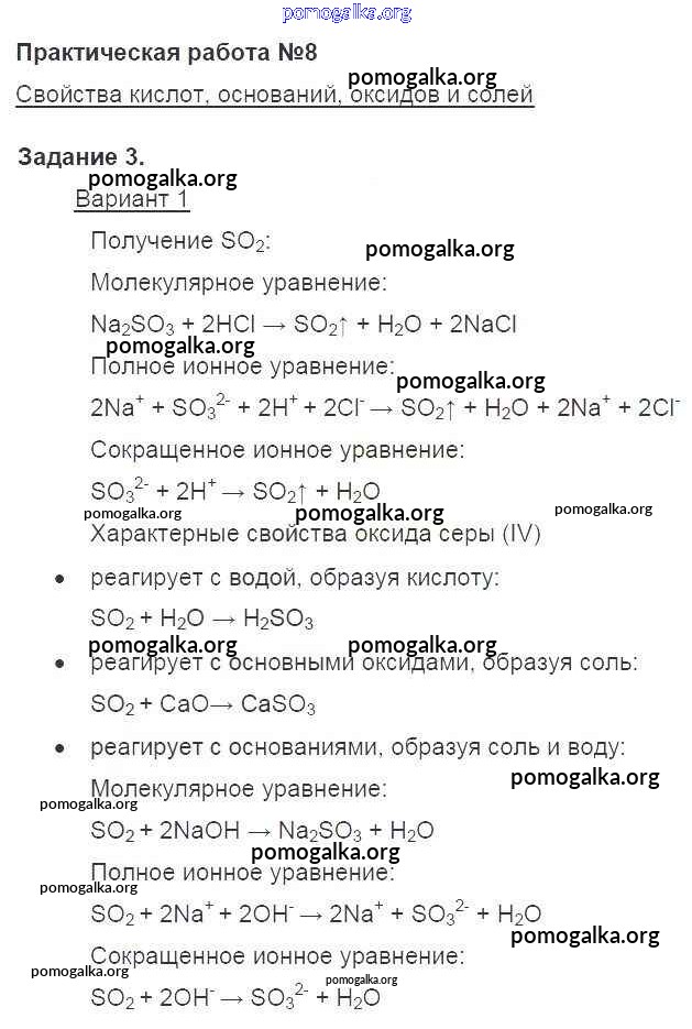 Готовые ответы - Химия 8 класс Габриелян О.С. - вариант 1 пр-8 3