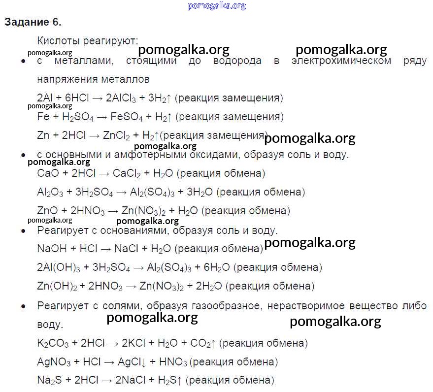 старое издание / задание / глава V. обобщение сведений о важнейших классах неорганических соединений / § 32 / 6