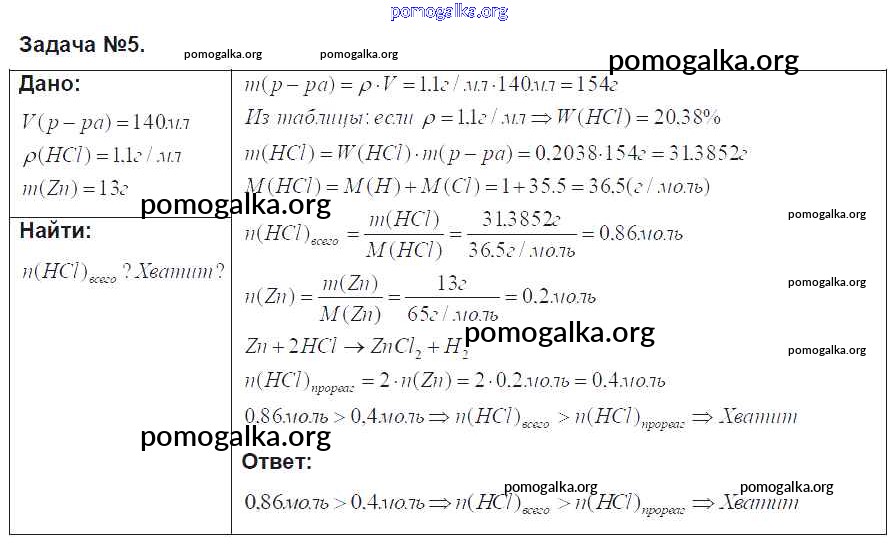 Готовые ответы - Химия 8 класс Рудзитис Г.Е. - § 48-49 задача 5