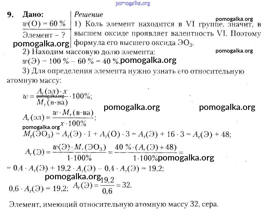 §9. Количественные расчеты по уравнениям химических реакций №1-9