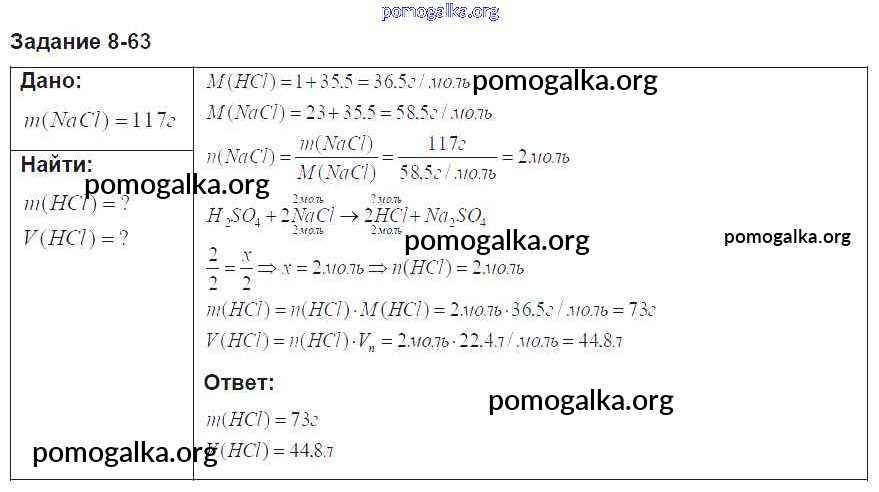 Готовые ответы - Химия 8 класс задачник Кузнецова Н.Е. - глава 8 63