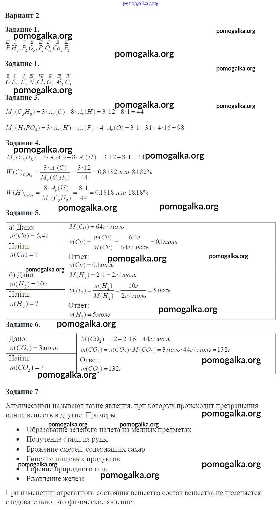 Готовые ответы - Химия 8 класс задачник Кузнецова Н.Е. - глава 1 контрольная работа 2