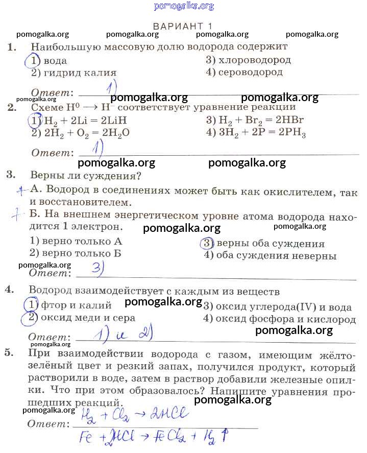 Готовые ответы - Химия 9 класс контрольные работы Габриелян О.С. (к уч. Габриеляна) - пр-16 проверочная работа вариант-1