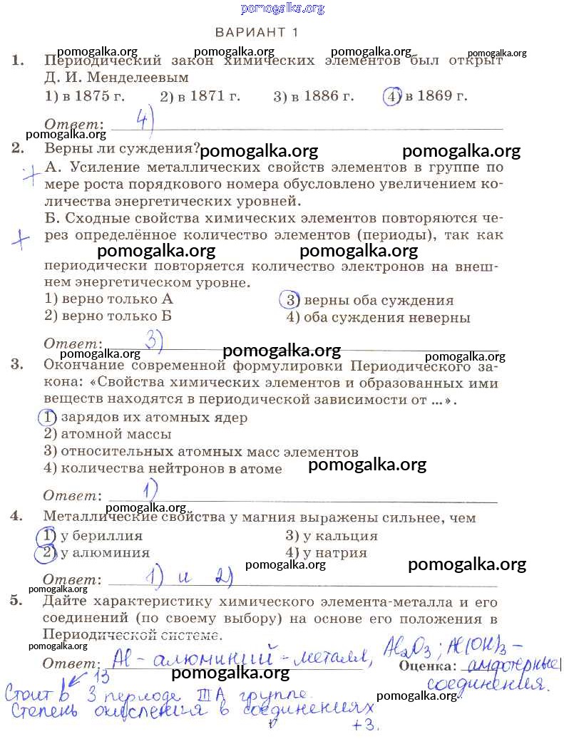Готовые ответы - Химия 9 класс контрольные работы Габриелян О.С. (к уч. Габриеляна) - пр-3 проверочная работа вариант-1