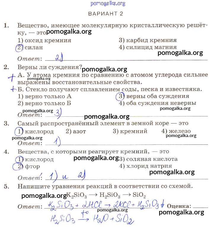 Готовые ответы - Химия 9 класс контрольные работы Габриелян О.С. (к уч. Габриеляна) - пр-30 проверочная работа вариант-2