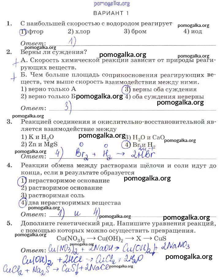 Готовые ответы - Химия 9 класс контрольные работы Габриелян О.С. (к уч. Габриеляна) - пр-4 проверочная работа вариант-1