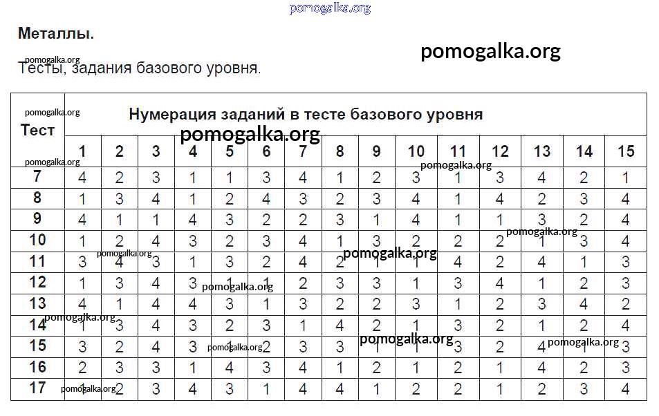 Готовые ответы - Химия 9 класс Тесты Рябов М.А. (к уч. Габриеляна) - металлы №3. Металлы. Задания базового уровня
