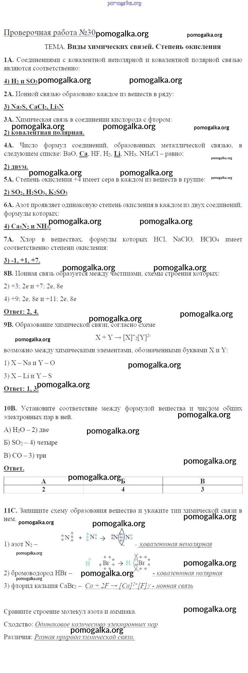 Готовые ответы - Химия 9 класс тетрадь для оценки качества знаний Габриелян О.С. (к уч. Габриеляна) - проверочная работа 30