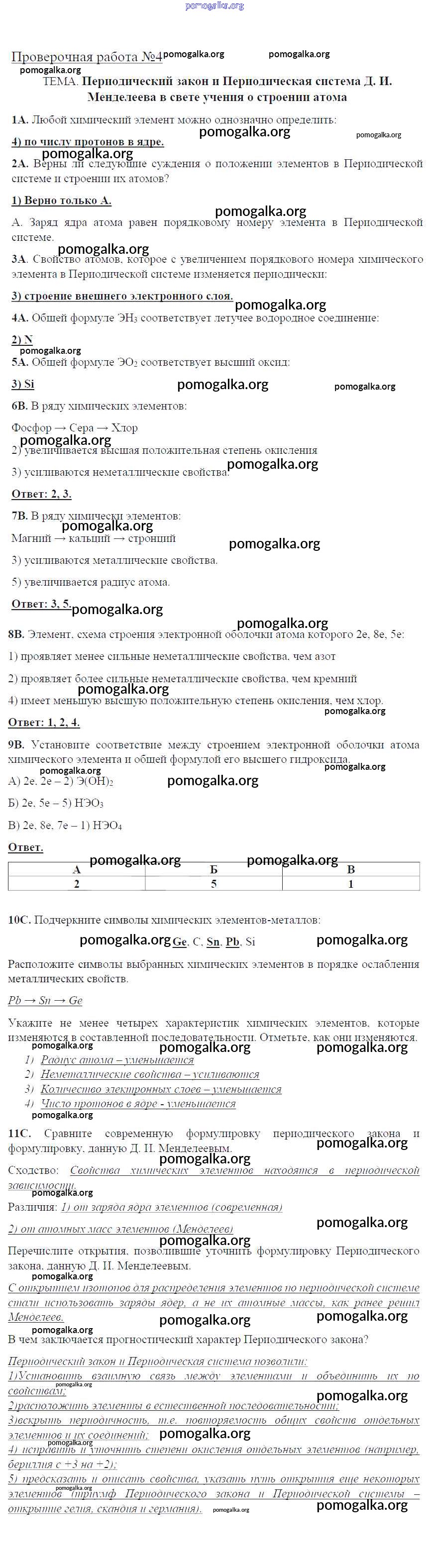 Готовые ответы - Химия 9 класс тетрадь для оценки качества знаний Габриелян О.С. (к уч. Габриеляна) - проверочная работа 4