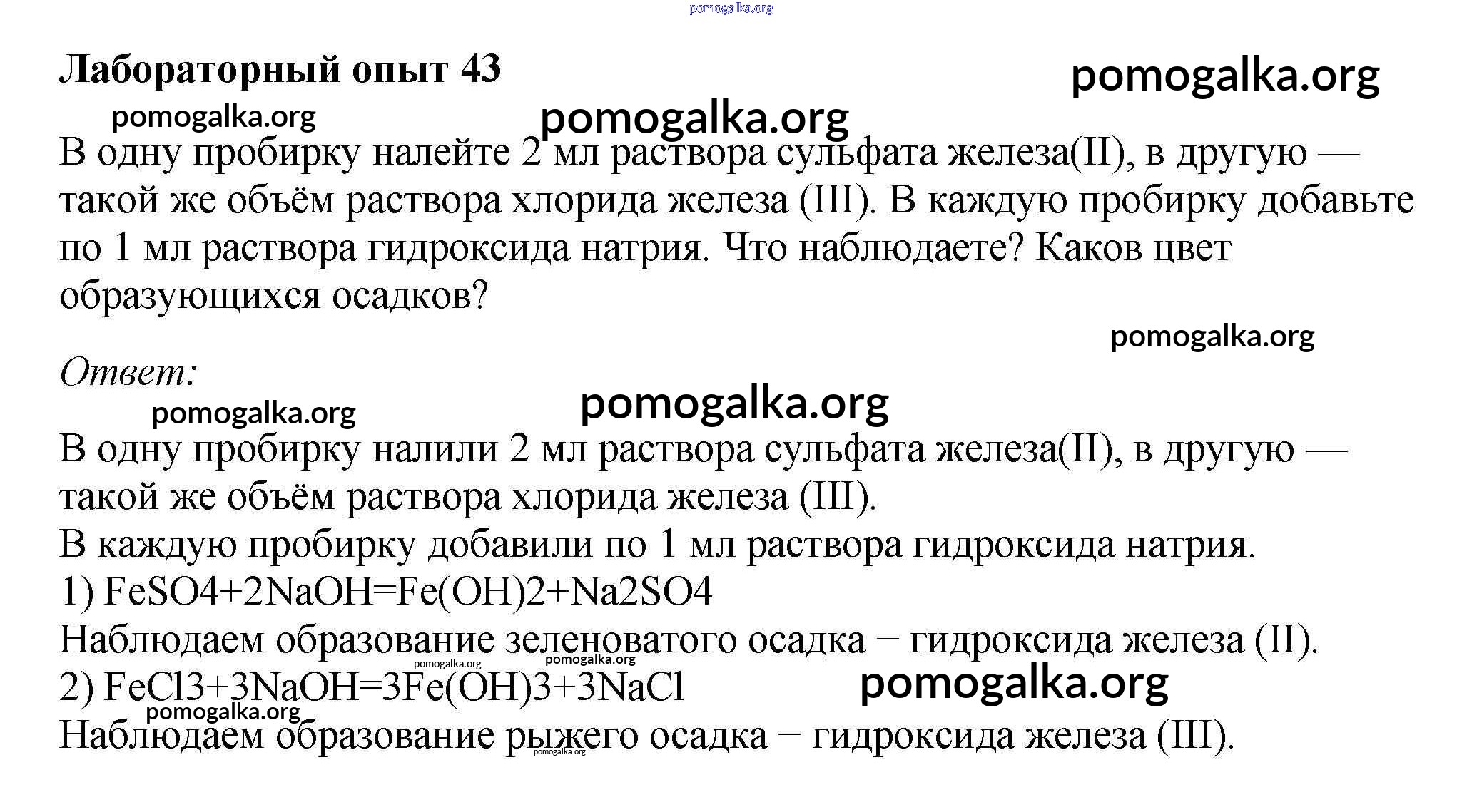 Готовые ответы - Химия 9 класс Габриелян О.С. - лабораторный опыт 43