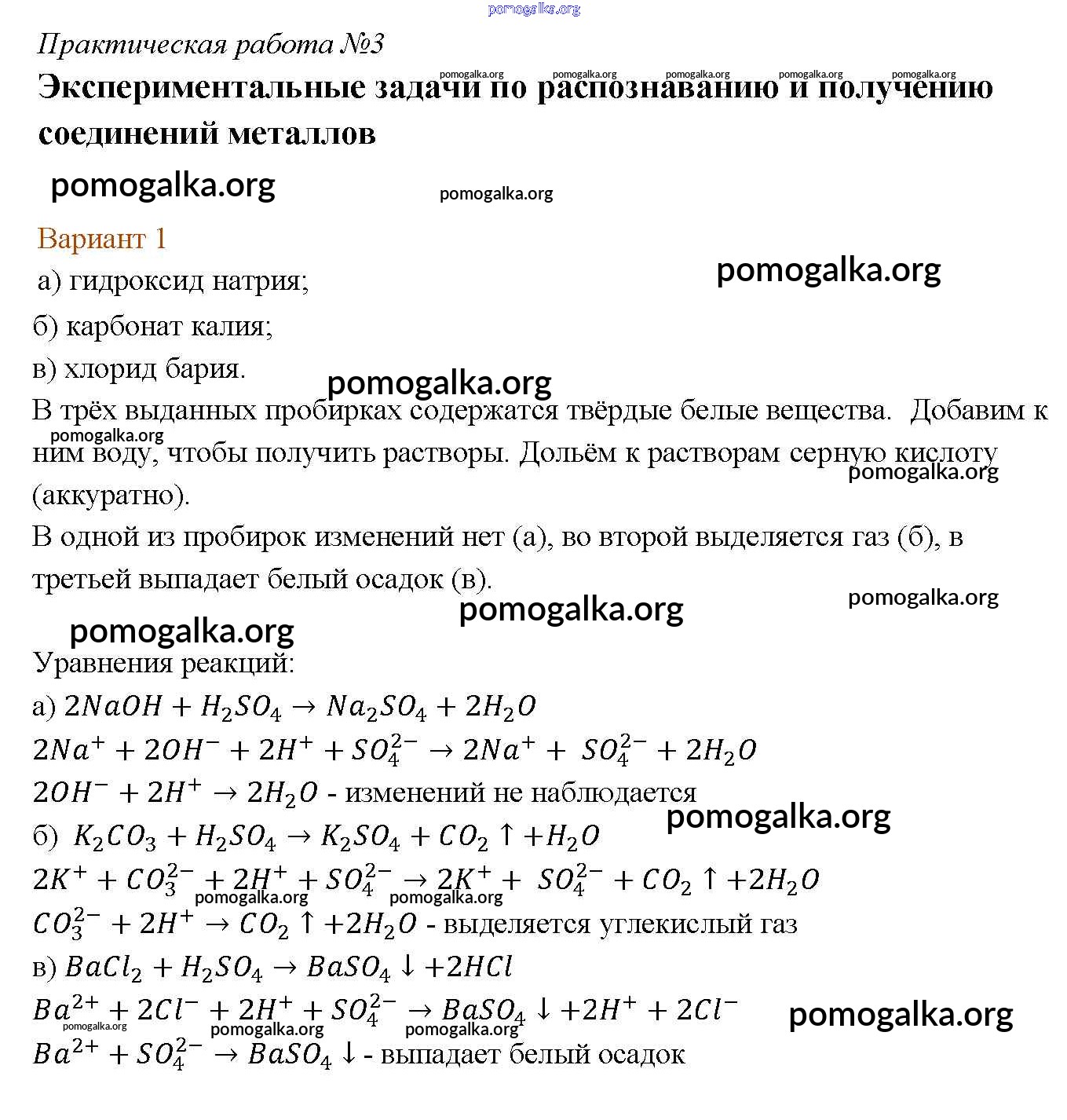 Готовые ответы - Химия 9 класс Габриелян О.С. - вариант пр-3 В-1