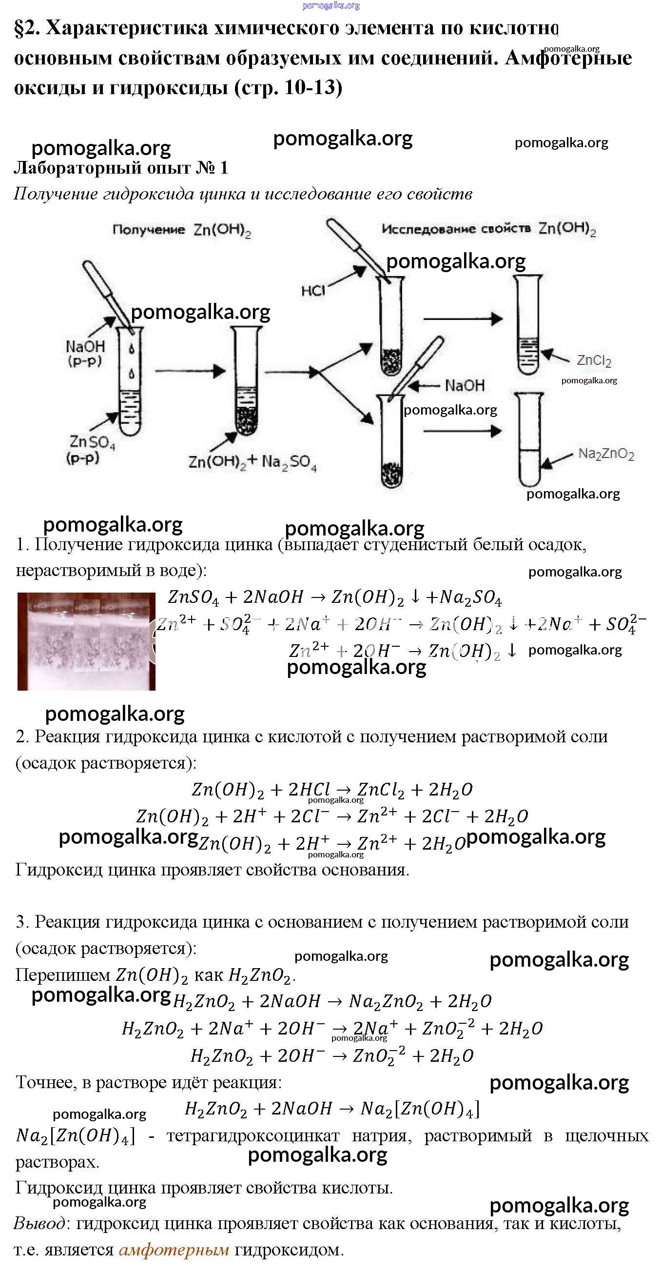 §2. Характеристика химического элемента по кислотно-основным свойствам образуемых им соединений. Амфотерные оксиды и гидроксиды. №1-4
