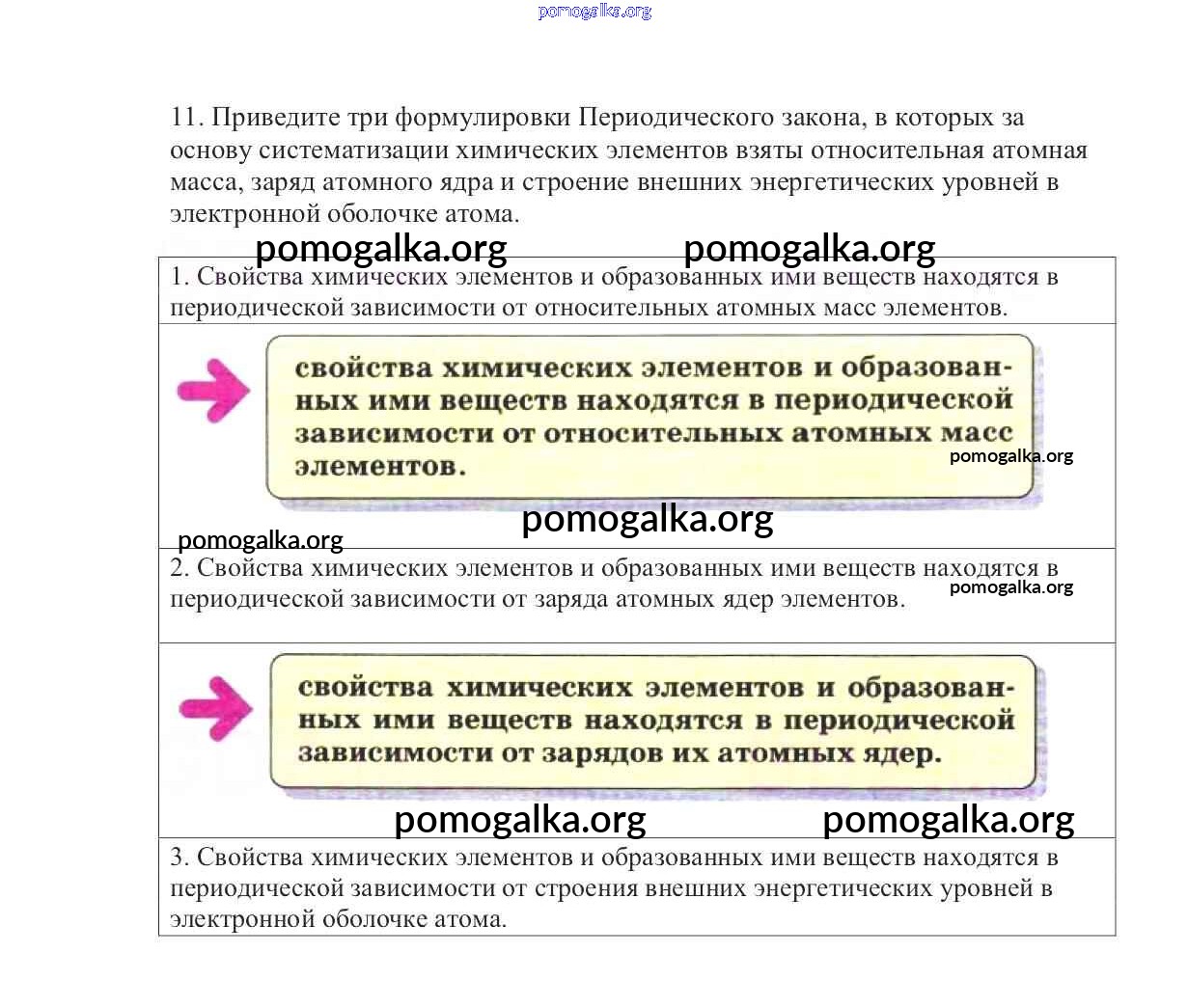 §3. Периодический закон и Периодическая система химических элементов Д. И. Менделеева. №1-11