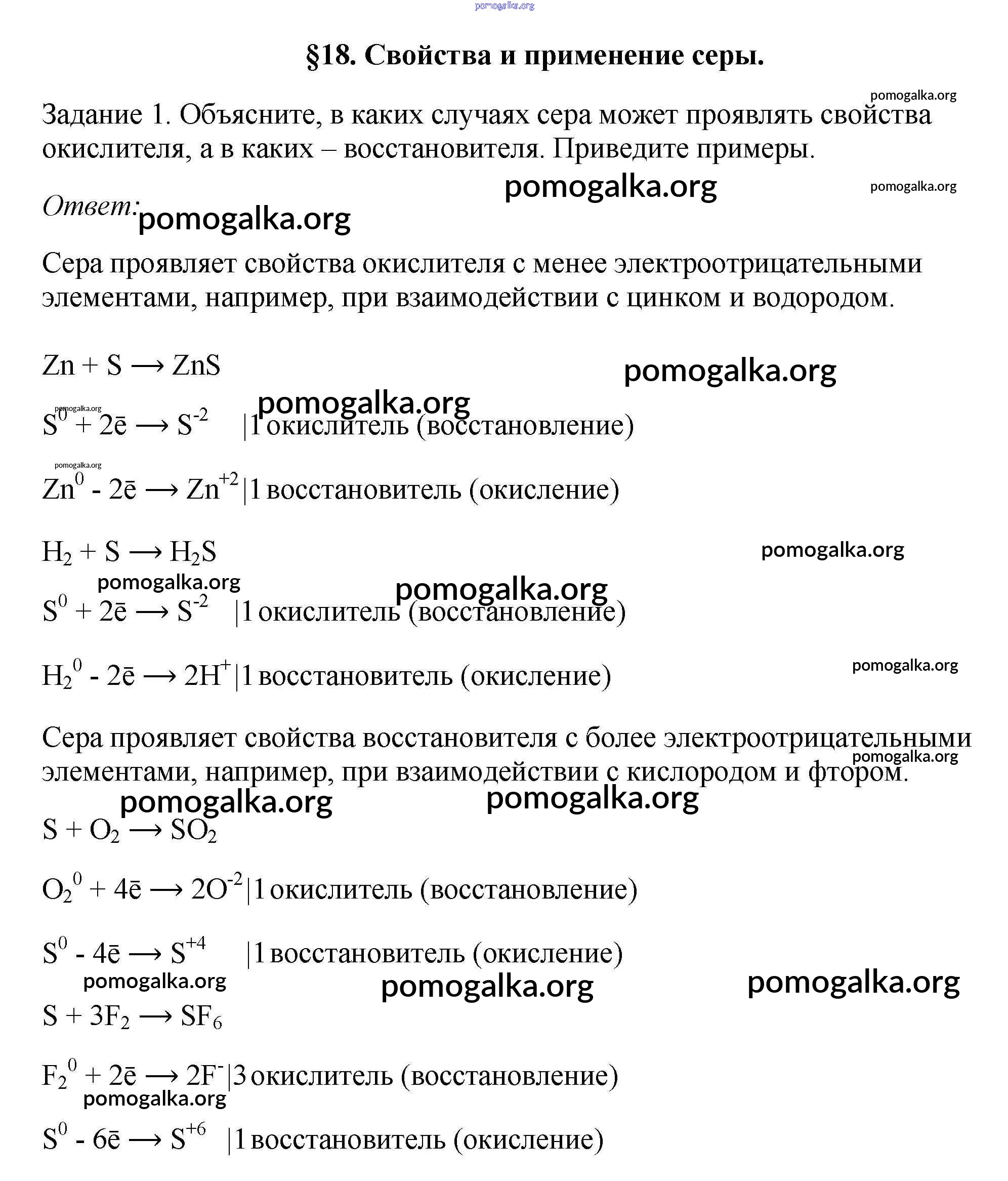 Готовые ответы - Химия 9 класс Рудзитис Г.Е. - § 18. Свойства и применения серы новое издание 1