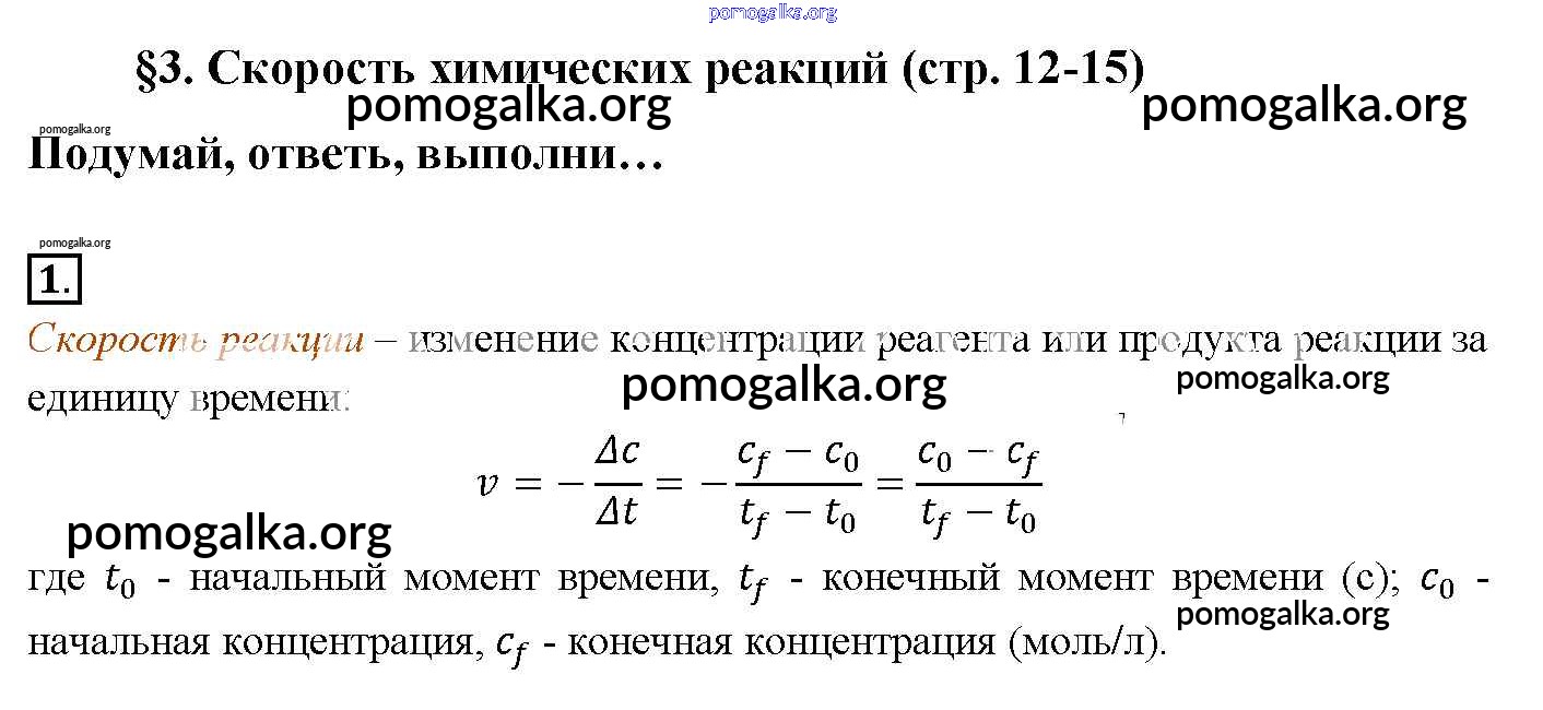 Готовые ответы - Химия 9 класс Рудзитис Г.Е. - § 3. Скорость химических реакций новое издание 1