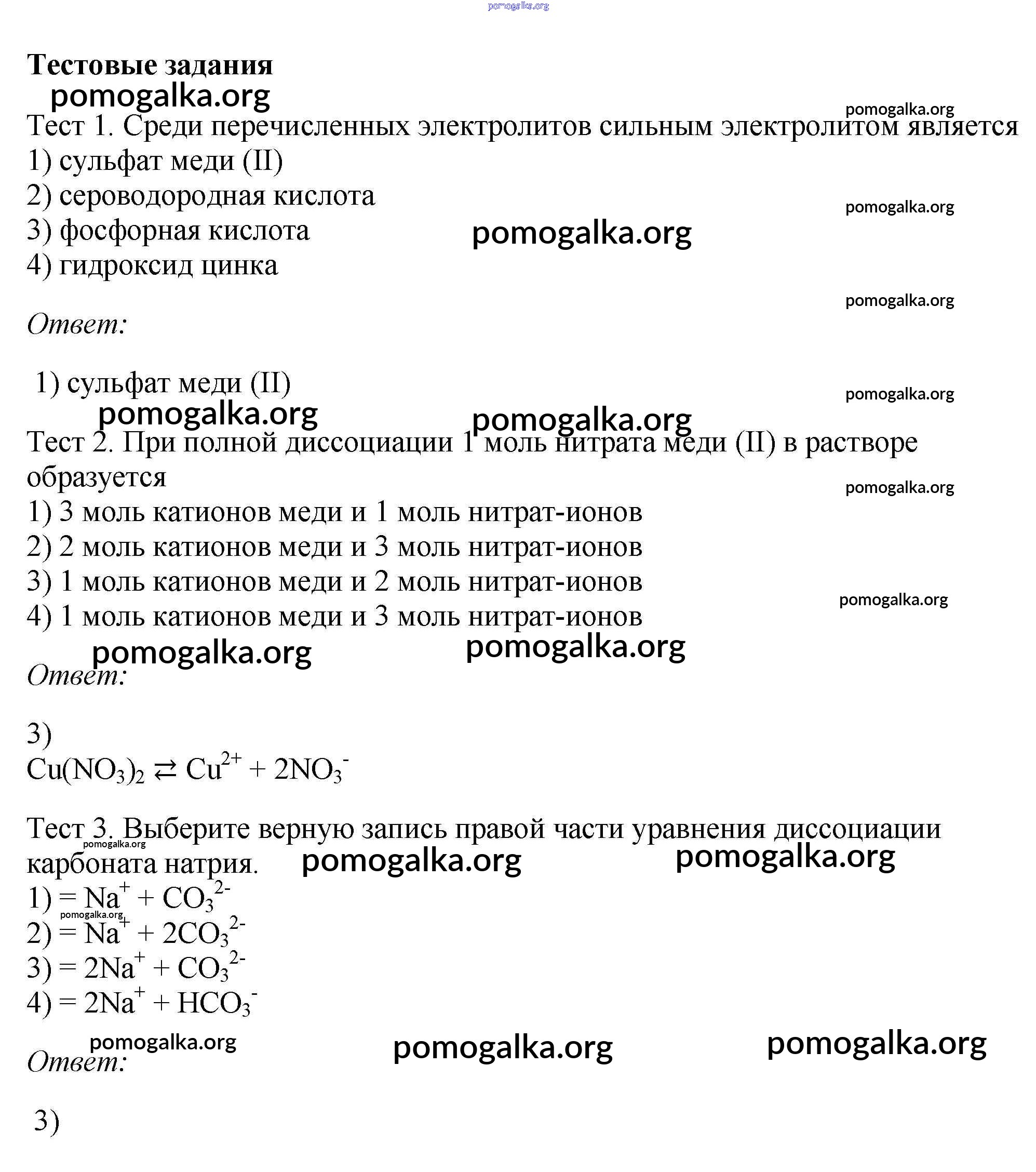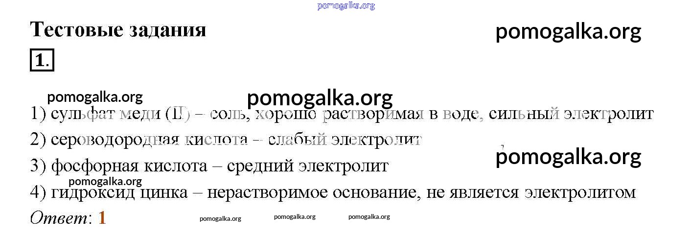 новое издание / § 8. Слабые и сильные электролиты. Степень диссоциаций / тестовое задание