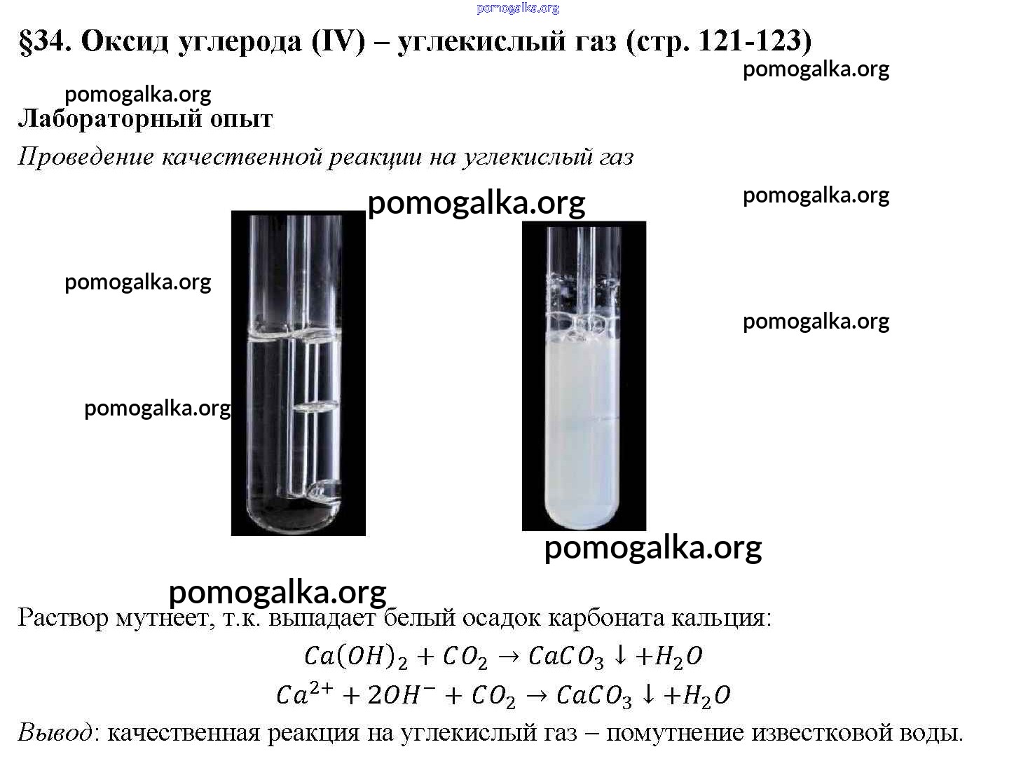 Готовые ответы - Химия 9 класс Рудзитис Г.Е. - § 34. Оксид углерода (IV) – углекислый газ новое издание Лабораторный опыт