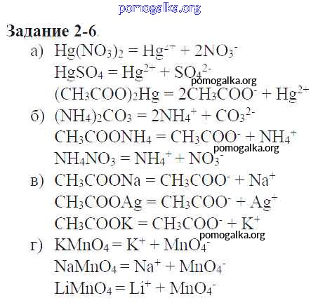 Готовые ответы - Химия 9 класс задачник Кузнецова Н.Е. - глава №2. теория электрической диссоциации 2-6