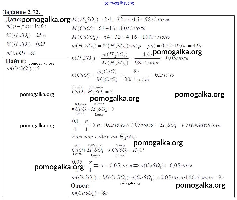 Готовые ответы - Химия 9 класс задачник Кузнецова Н.Е. - глава №2. теория электрической диссоциации 2-72