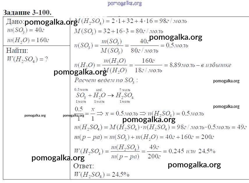 Готовые ответы - Химия 9 класс задачник Кузнецова Н.Е. - глава №3. сера. соединения серы 3-100