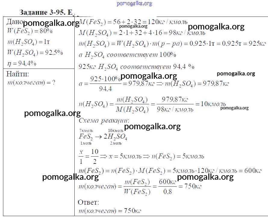 Готовые ответы - Химия 9 класс задачник Кузнецова Н.Е. - глава №3. сера. соединения серы 3-95