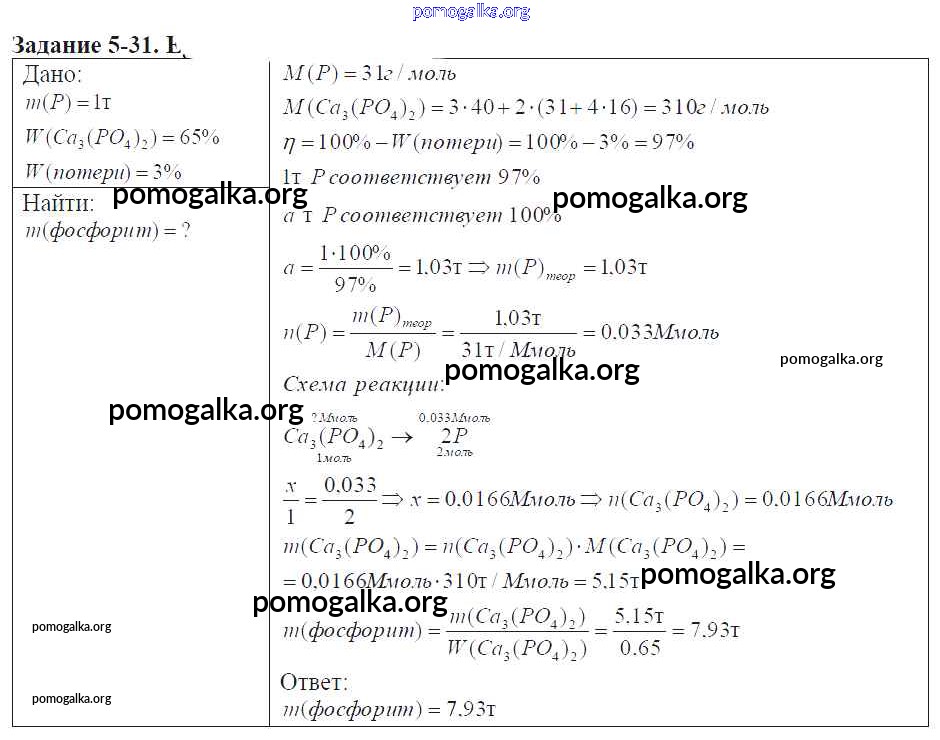 Готовые ответы - Химия 9 класс задачник Кузнецова Н.Е. - глава №5. фосфор. соединения фосфора 5-31