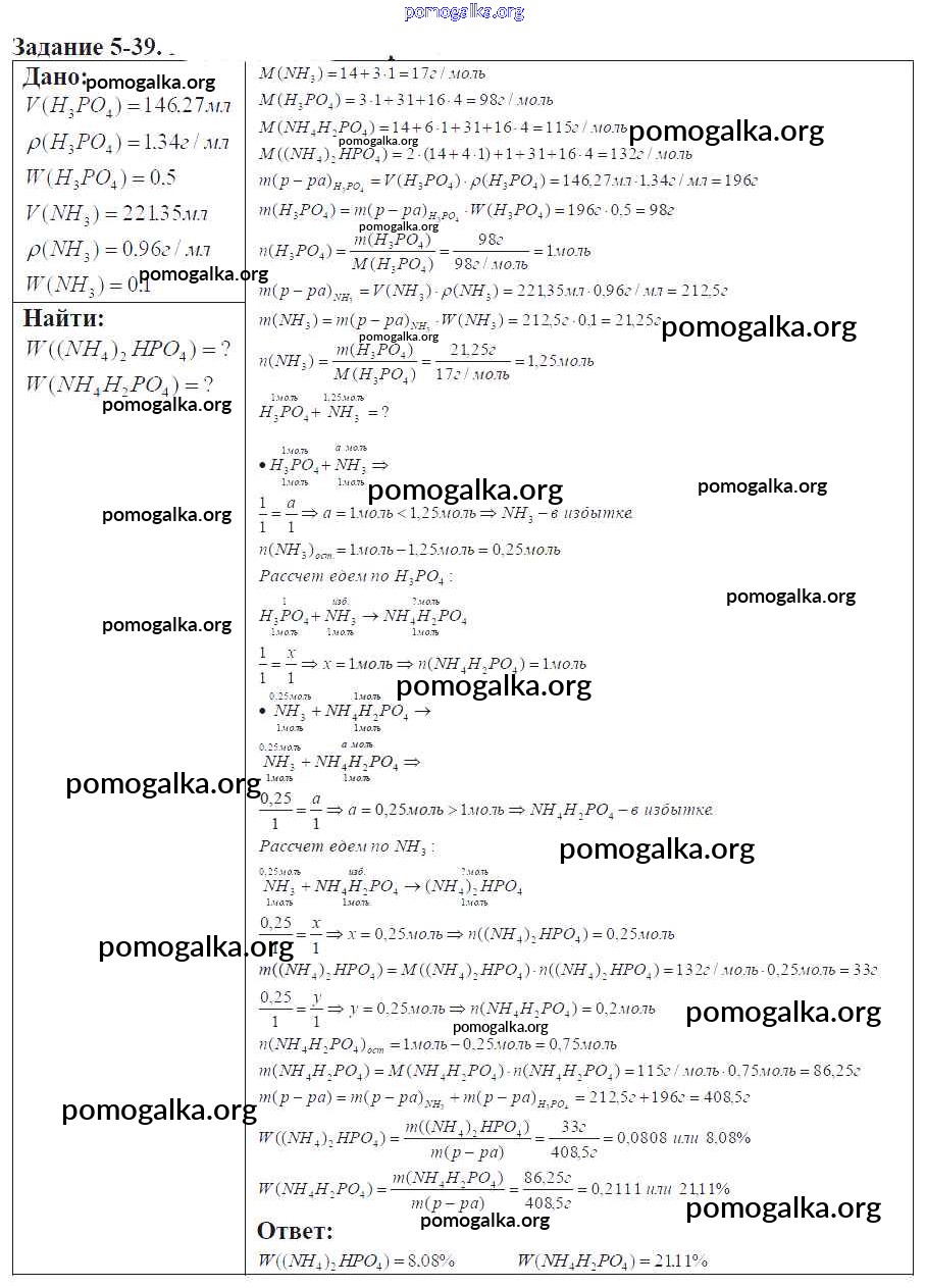 Готовые ответы - Химия 9 класс задачник Кузнецова Н.Е. - глава №5. фосфор. соединения фосфора 5-39