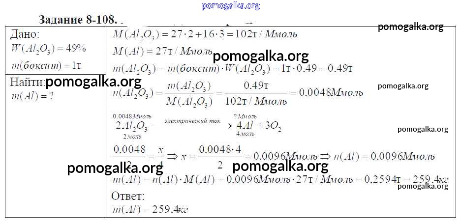 Готовые ответы - Химия 9 класс задачник Кузнецова Н.Е. - глава №8. металлы 8-108