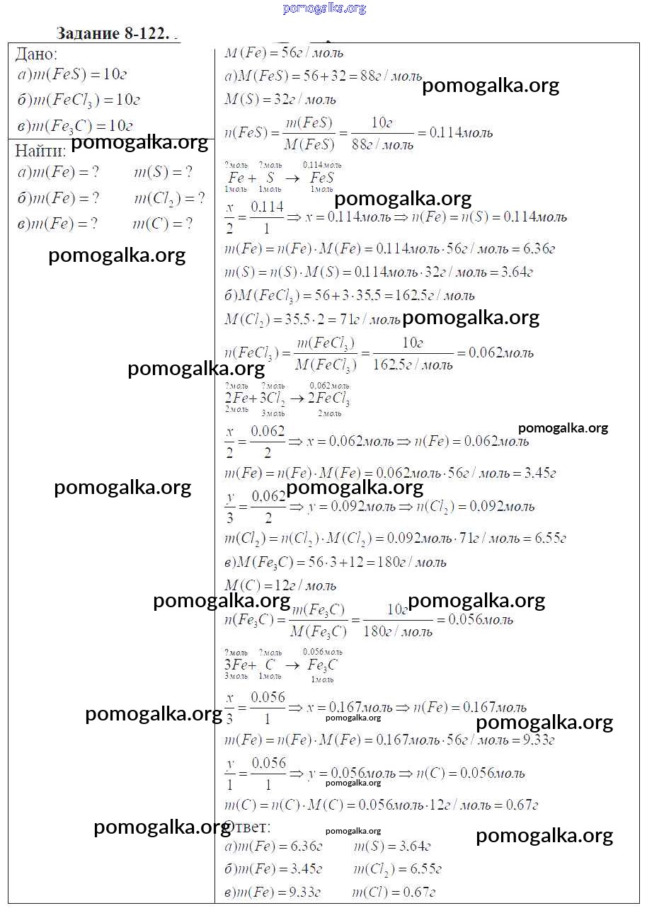 Готовые ответы - Химия 9 класс задачник Кузнецова Н.Е. - глава №8. металлы 8-122
