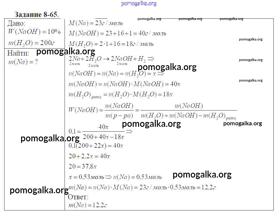 Готовые ответы - Химия 9 класс задачник Кузнецова Н.Е. - глава №8. металлы 8-65