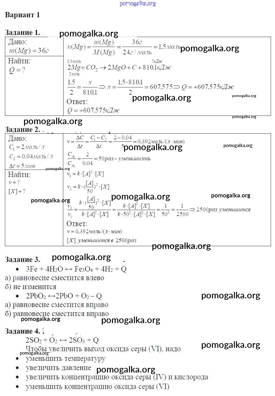 Готовые ответы - Химия 9 класс задачник Кузнецова Н.Е. - глава 1 контрольная работа вариант-1