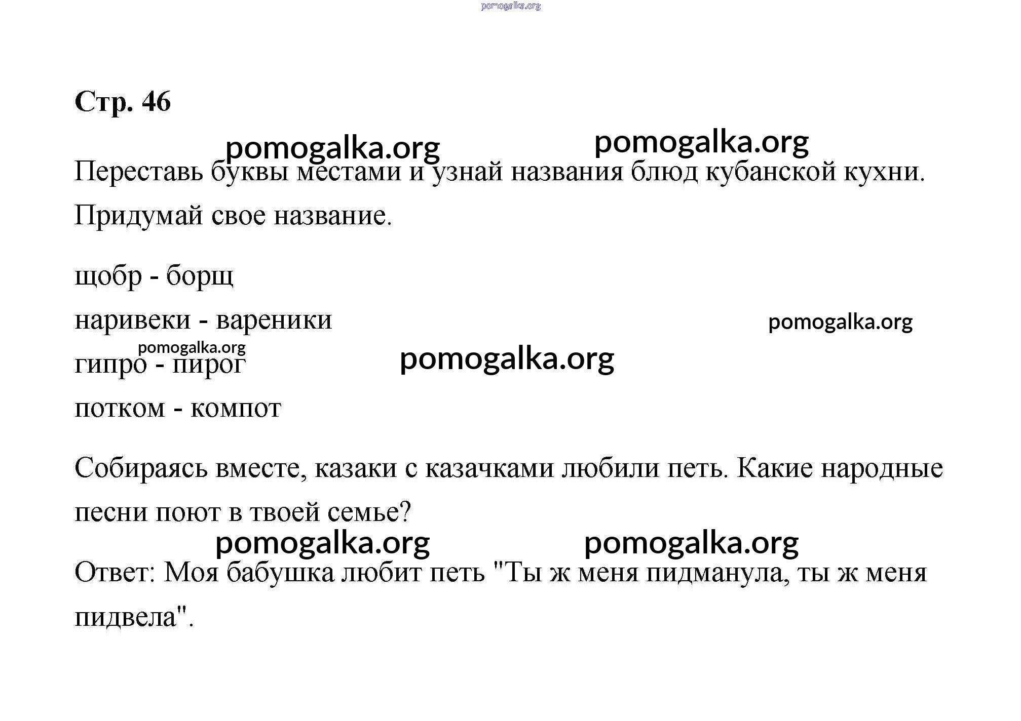 Готовые ответы - Кубановедение 2 класс рабочая тетрадь Еременко - страница 46