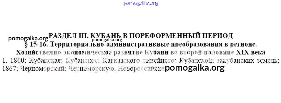 § 15-16. Территориально-административные преобразования в регионе Хозяйственно-экономическое развитие Кубани во второй половине XIX века. № 1-7