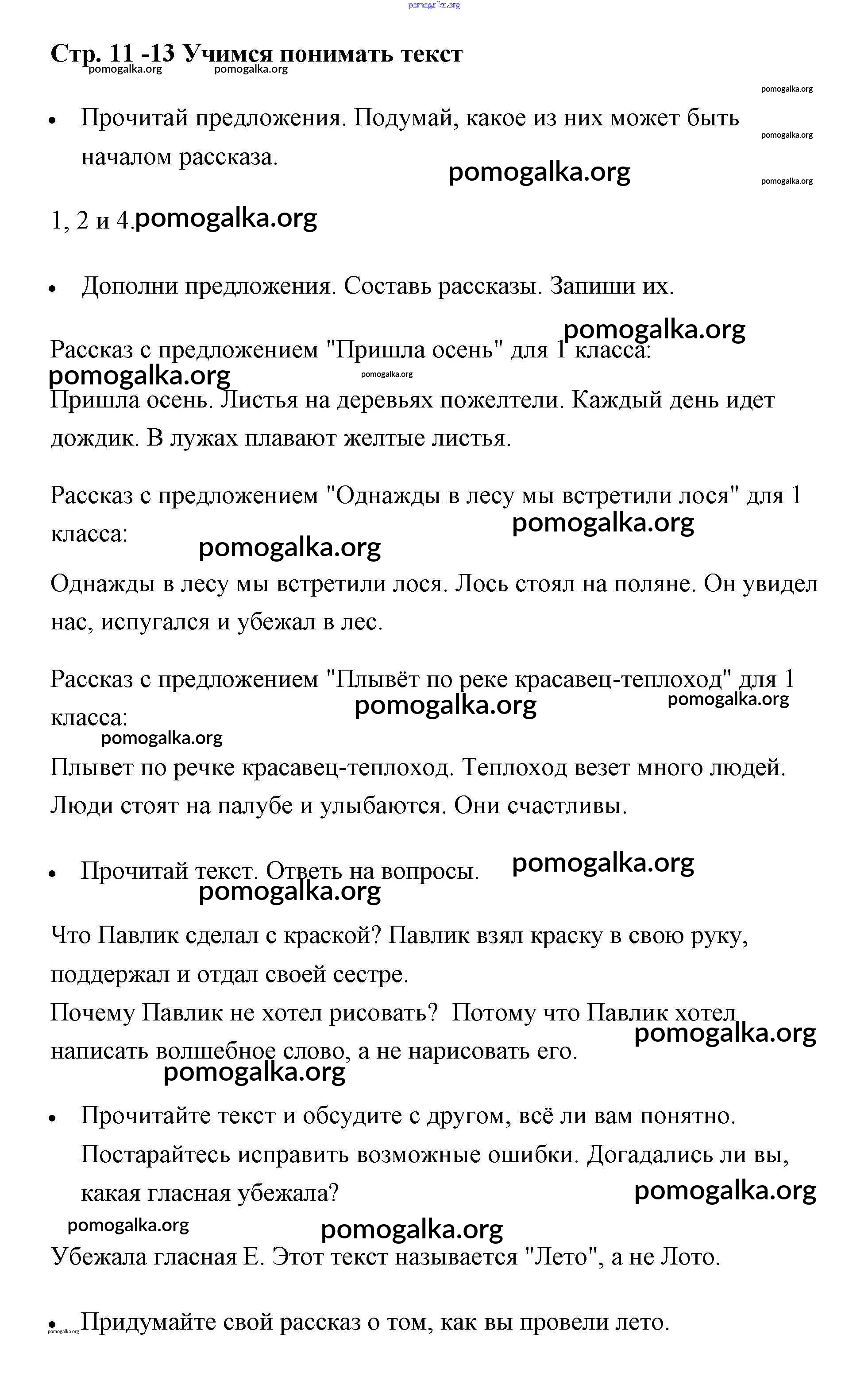 Готовые ответы - Литературное чтение 1 класс рабочая тетрадь Бойкина - страница 11-13