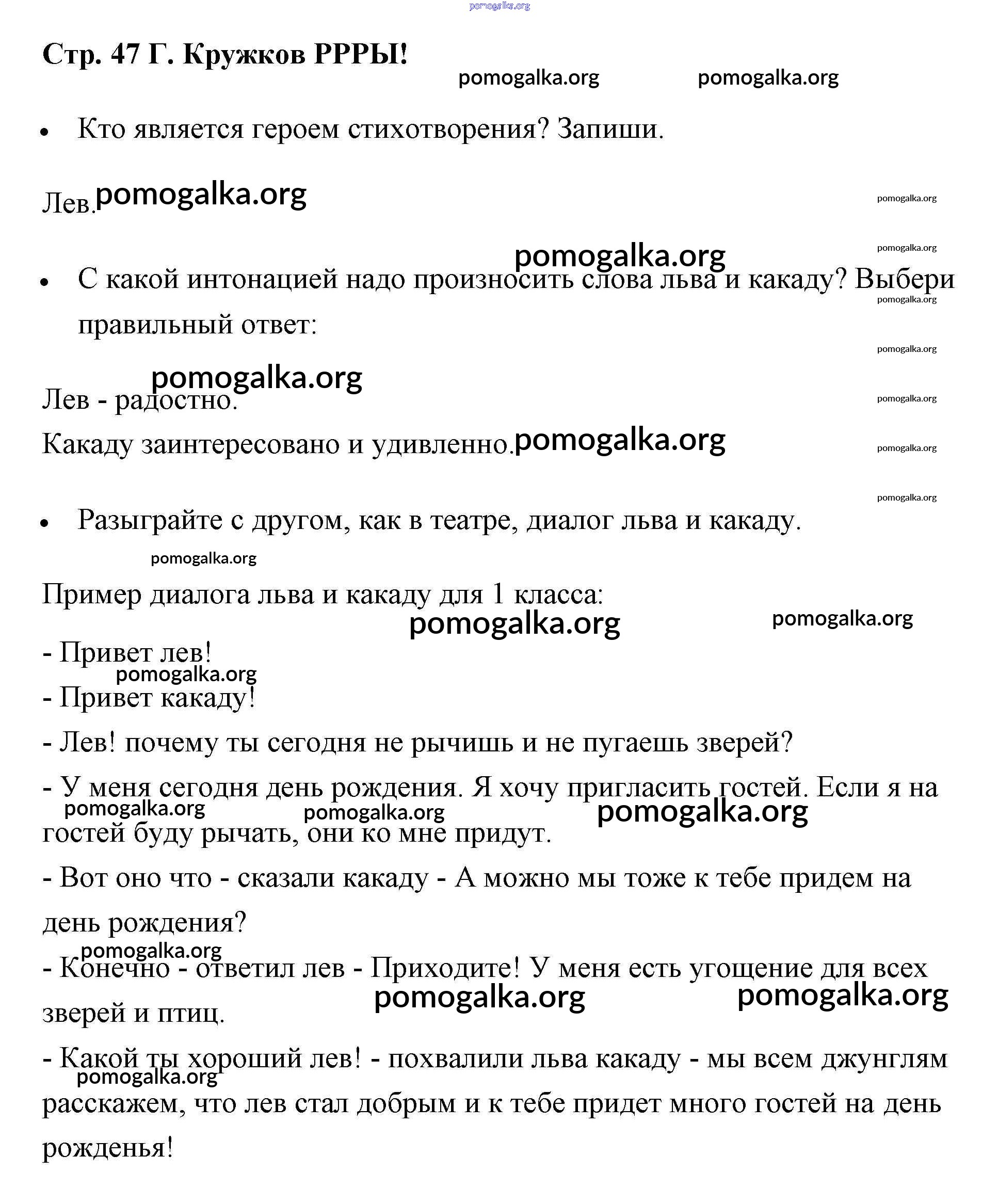 Готовые ответы - Литературное чтение 1 класс рабочая тетрадь Бойкина - страница 47