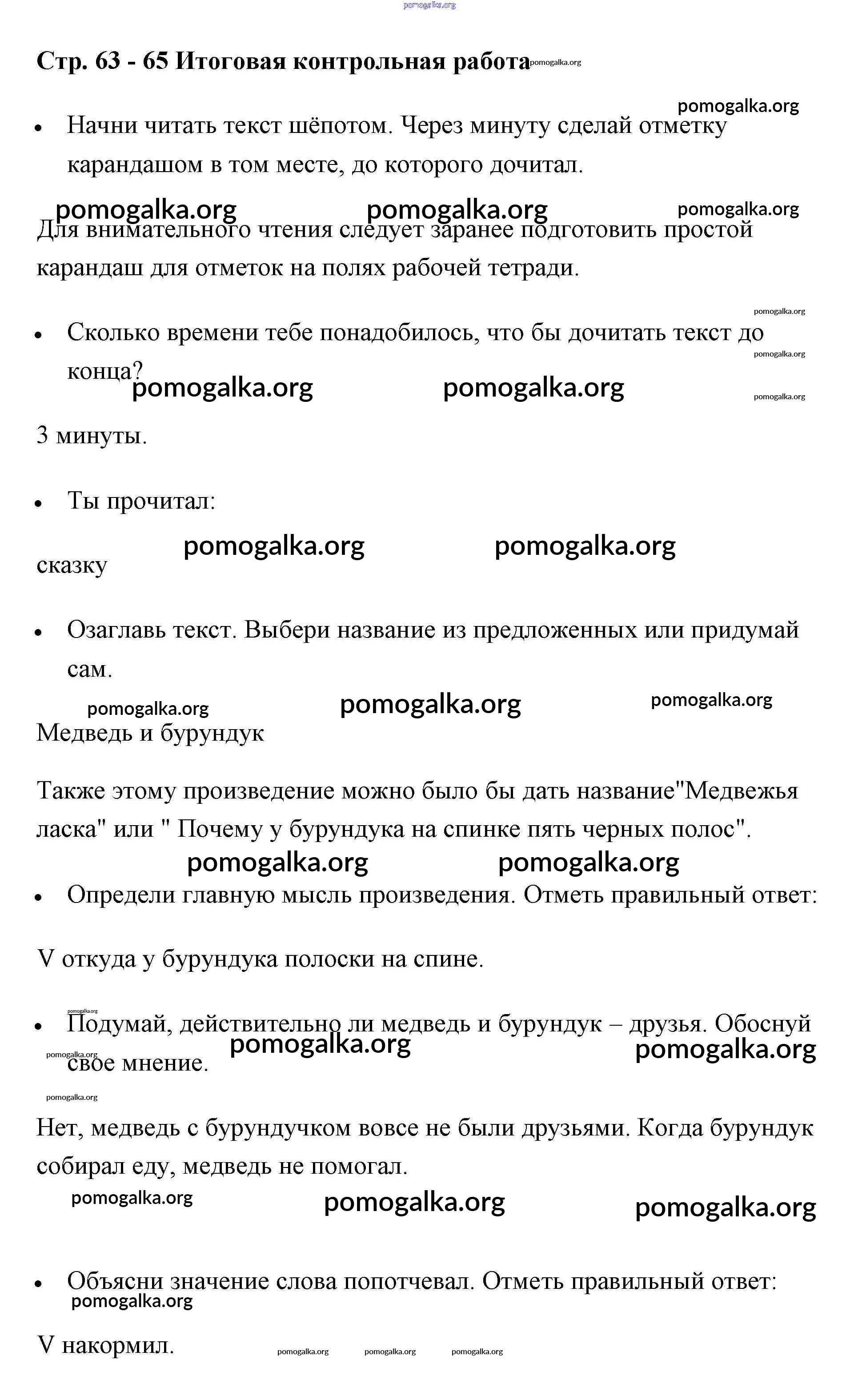 Готовые ответы - Литературное чтение 1 класс рабочая тетрадь Бойкина - страница 63-65