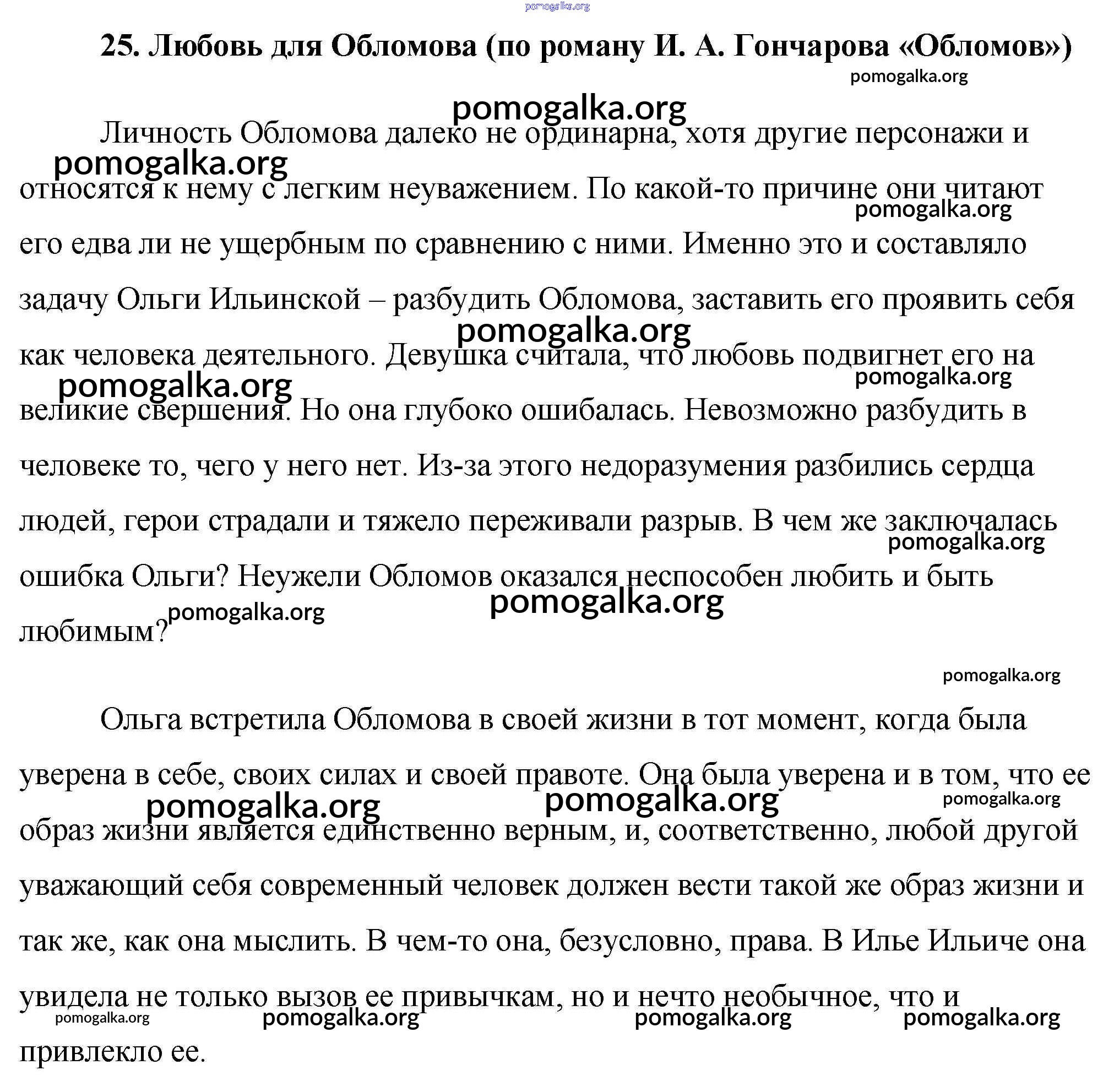 Готовые ответы - Готовые сочинения по литературе 10 класс Еременко М. В. - сочинение 25. Любовь для Обломова (по роману И. А. Гончарова «Обломов»)