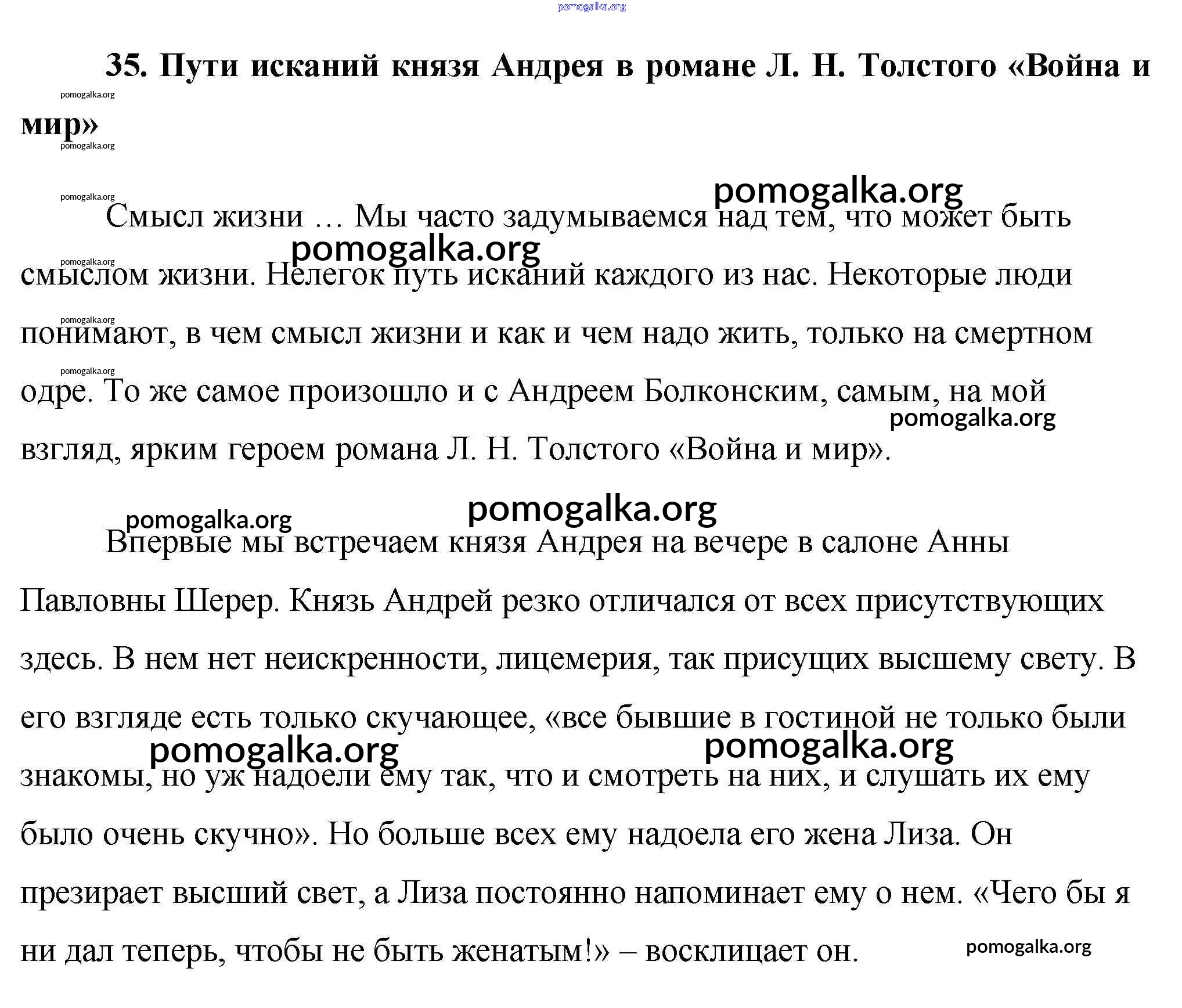 Готовые ответы - Готовые сочинения по литературе 10 класс Еременко М. В. - сочинение 35. Пути исканий князя Андрея в романе Л. Н. Толстого «Война и мир»
