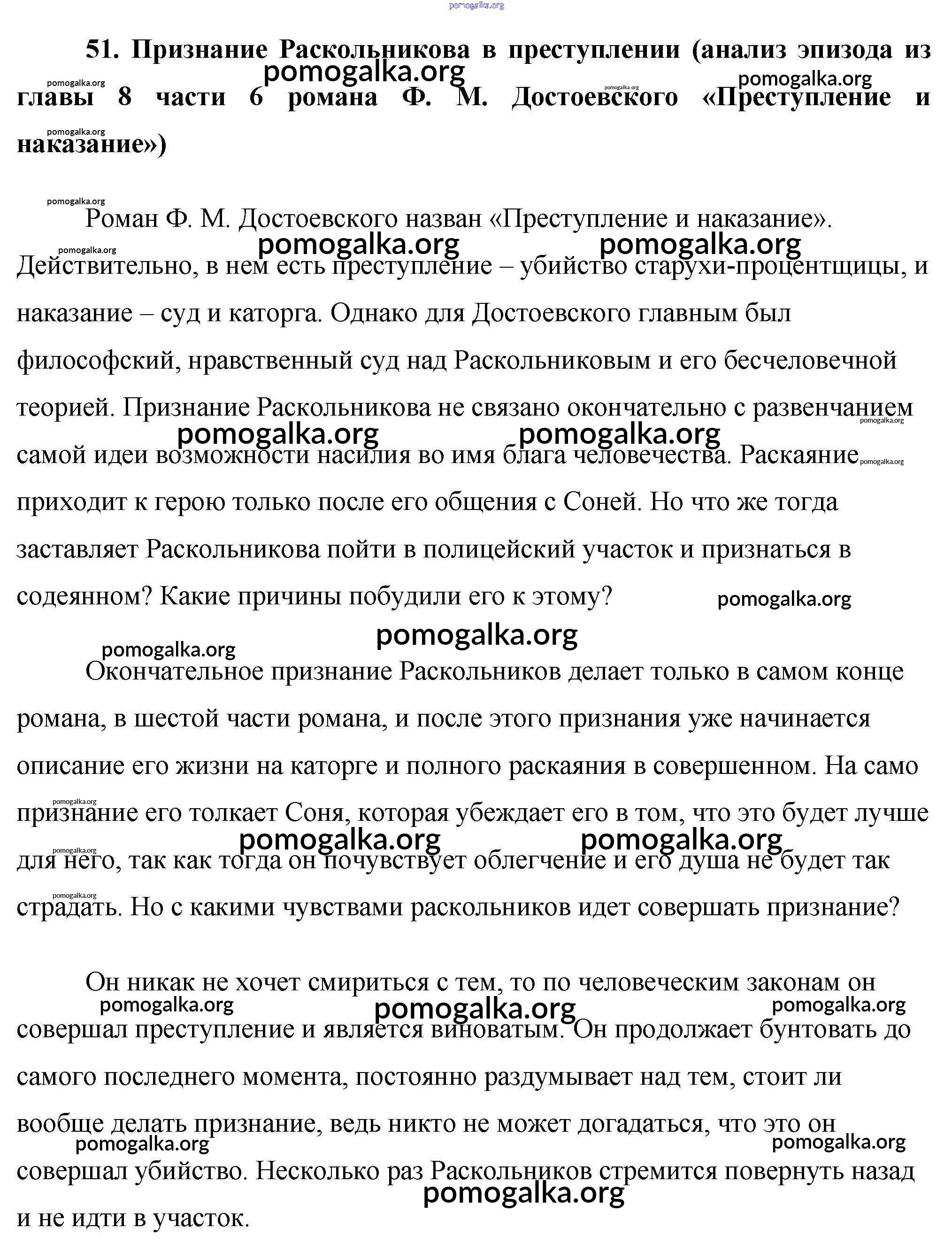 51. Признание Раскольникова в преступлении (анализ эпизода из главы 8 части 6 романа Ф. М. Достоевского «Преступление и наказание»)