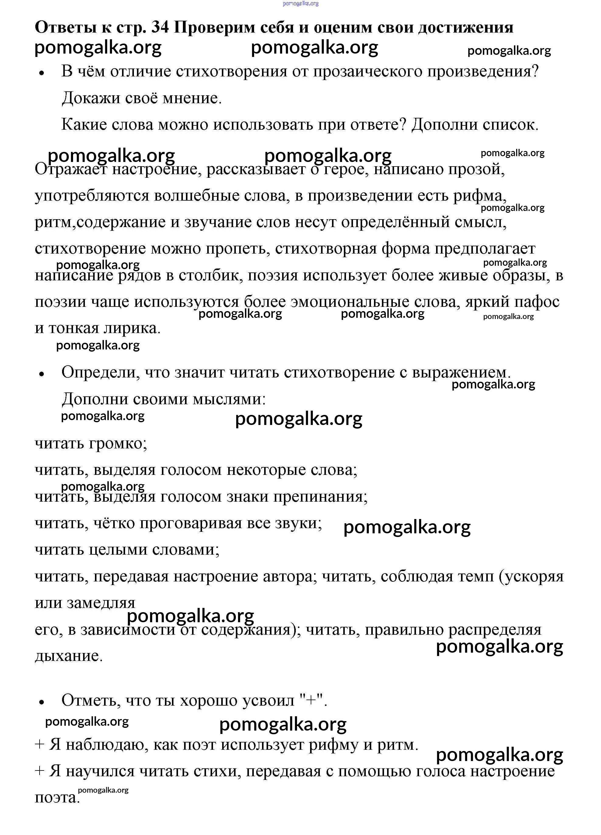 Готовые ответы - Литературное чтение 2 класс рабочая тетрадь Бойкина - страница 34