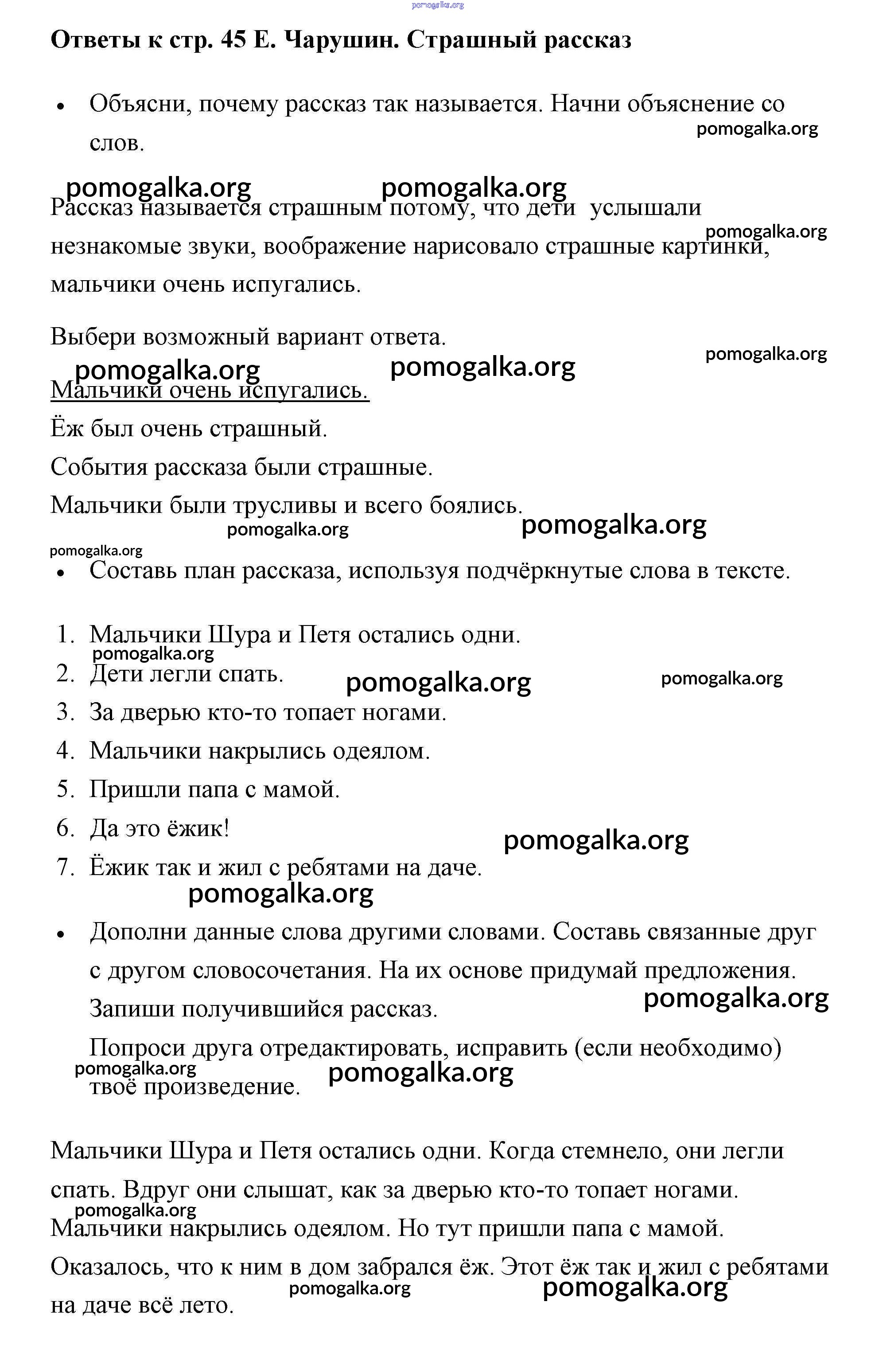 Готовые ответы - Литературное чтение 2 класс рабочая тетрадь Бойкина - страница 45