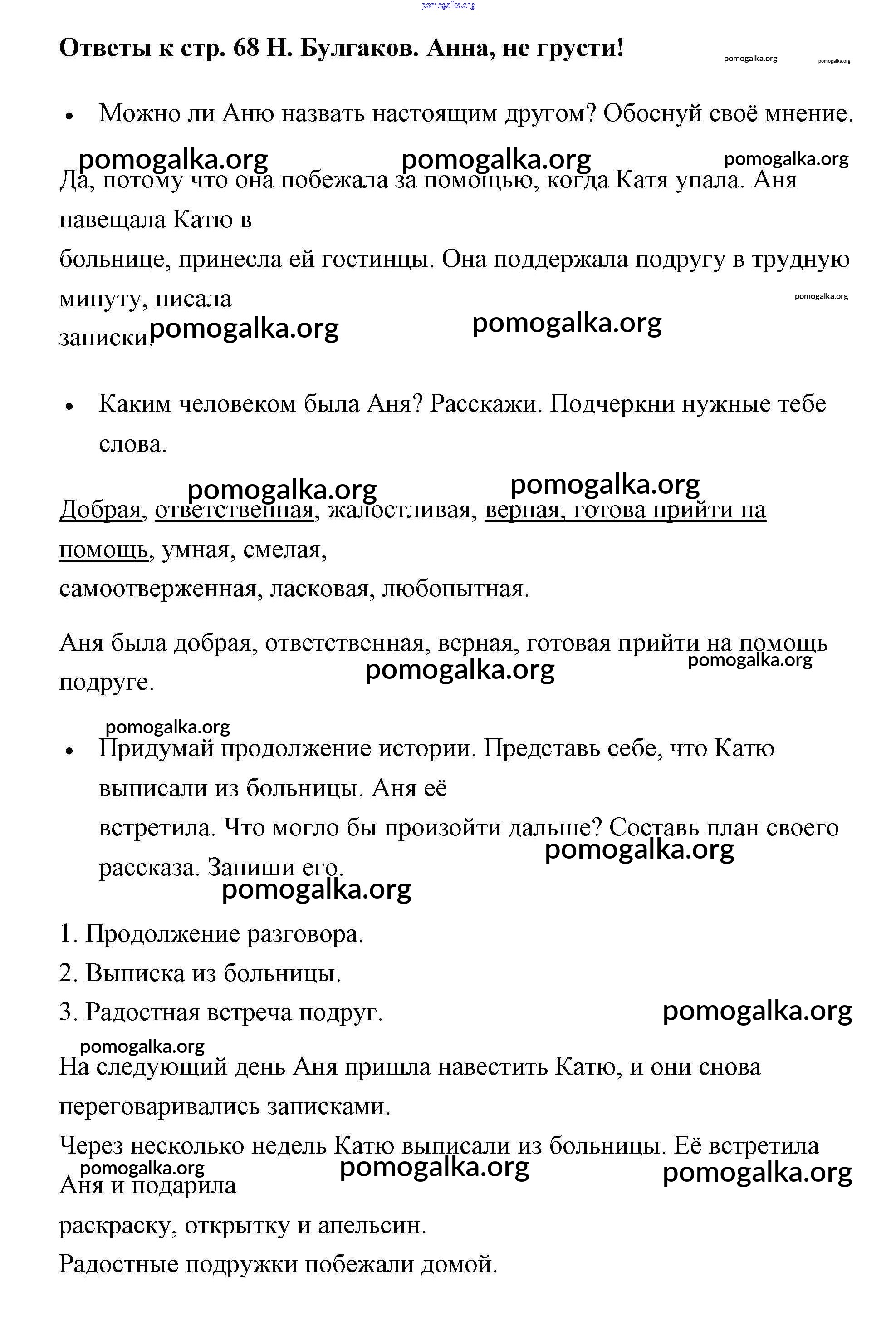 Готовые ответы - Литературное чтение 2 класс рабочая тетрадь Бойкина - страница 68